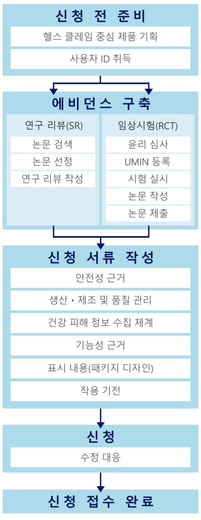 한국 기업 단독으로는 신고할 수 없다고 생각하기 쉽지만, 수입 판매업체를 통한 신고나 일본 법인과의 공동 대응을 통해 실질적으로 자사 제품을 기능성 표시 식품으로 전개하는 것이 가능합니다.