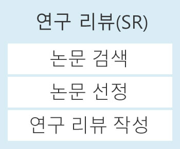 SR(연구 리뷰): 기존 문헌을 수집·평가하여 재구성하는 방식으로, 비용과 시간이 적게 들지만 구성 요건을 충족하지 않으면 접수가 거절됩니다.